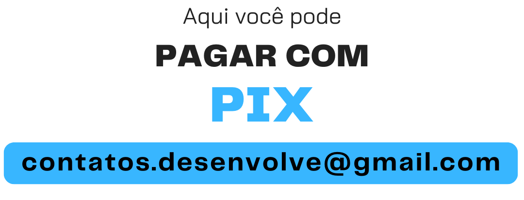 Caso efetue o pagamento via pix favor enviar o comprovante no email ou whatsapp para agilizarmos a liberação. Inserir o valor já com o desconto ao efetuar o pagamento pelo QR-Code. contatos.desenvolve@gmail.com /
